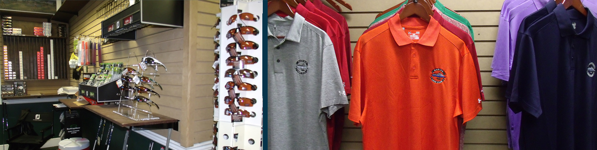 Golf shirts, tee shirts, and hat are all available in various colors and styles, all emblazoned with the famous Marion Lake Club logo.